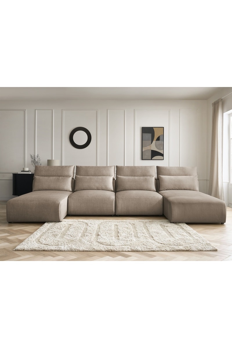 Canapé d'angle panoramique réversible Jana - Taupe - 4 places - En tissu velours