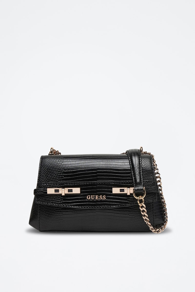Guess crée des vêtements mais aussi une multitude d'accessoires : les sacs, portefeuilles et foulards de la marque puisent leur style dans la recherche de la féminité et du glamour, symbole de Guess depuis ses débuts.