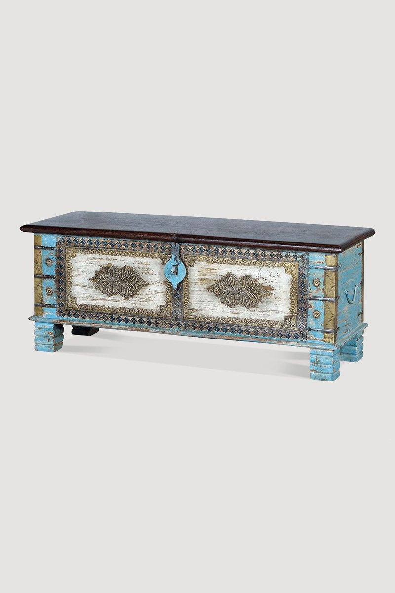 Coffre en manguier et bronze - 116 x 45 x 40 cm