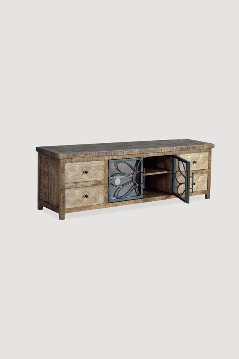 Meuble TV 2 portes en manguier - 170 x 55 x 40 cm
