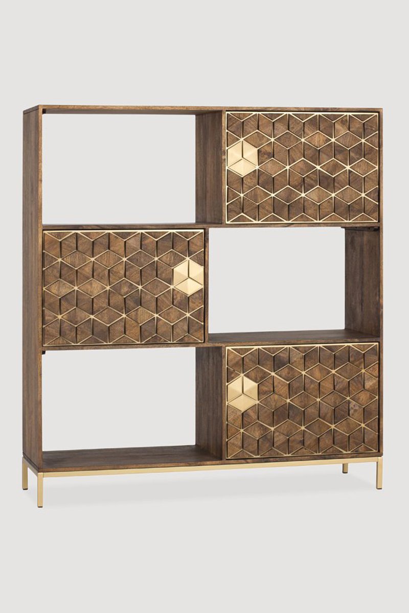 Bibliothèque 3 portes en bois de manguier - 143 x 130 x 40 cm