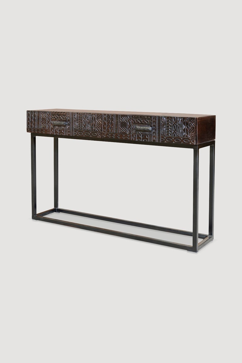 Console 2 tiroirs en manguier - 120 x 76 x 30 cm
