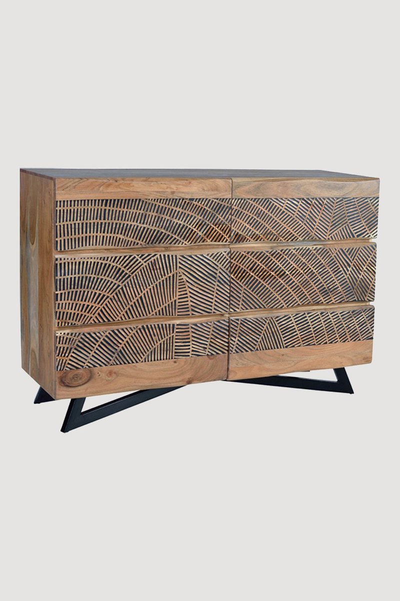 Commode 6 tiroirs en acacia - 125 x 86 x 40 cm