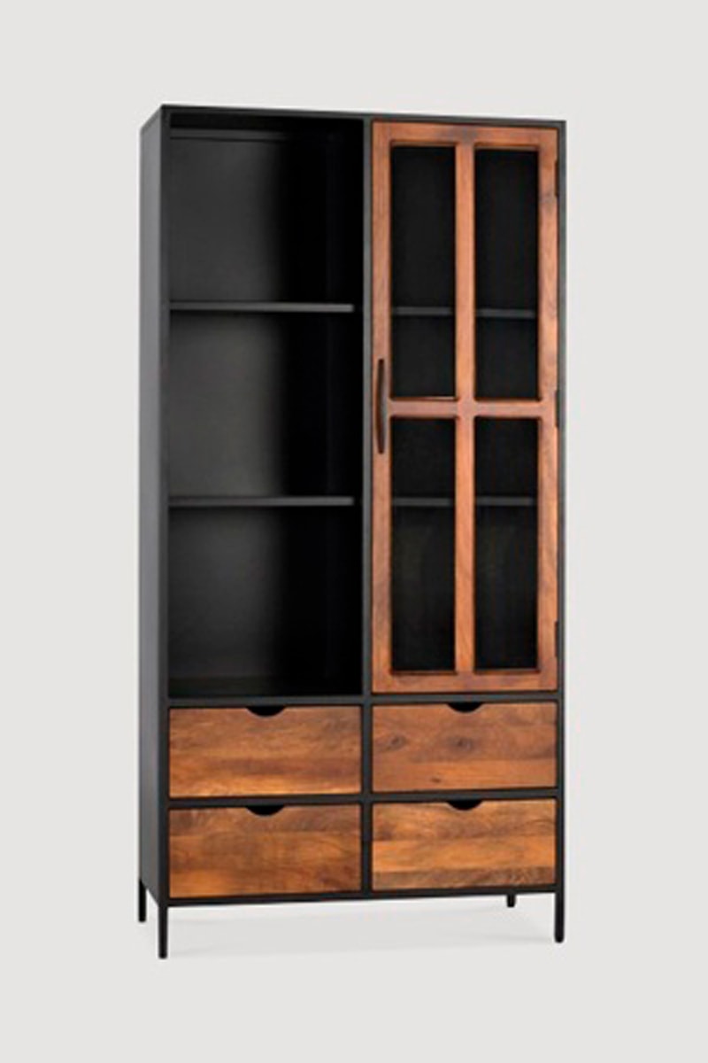 Vitrine 1 porte - Naturel et noir