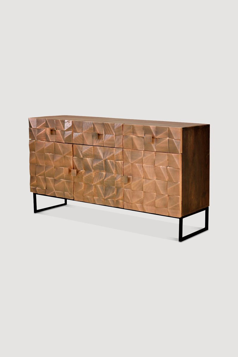 Buffet 3 portes en manguier et bronze - 142 x 80 x 42 cm