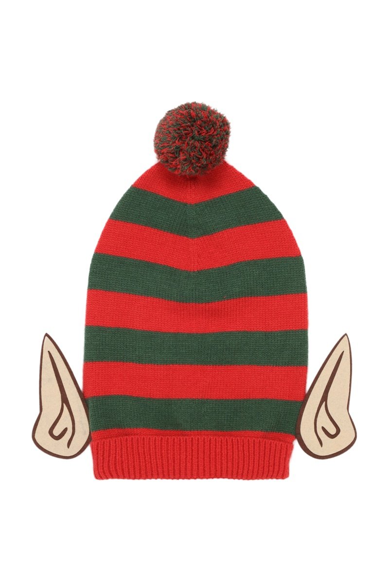 Bonnet à pompon - Rouge et vert émeraude