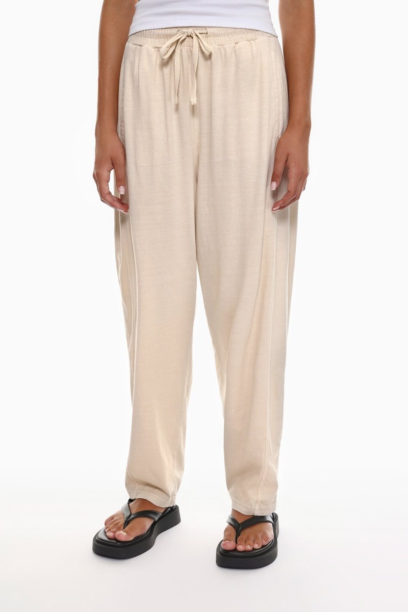 Taille haute élastique avec liens de serrage.