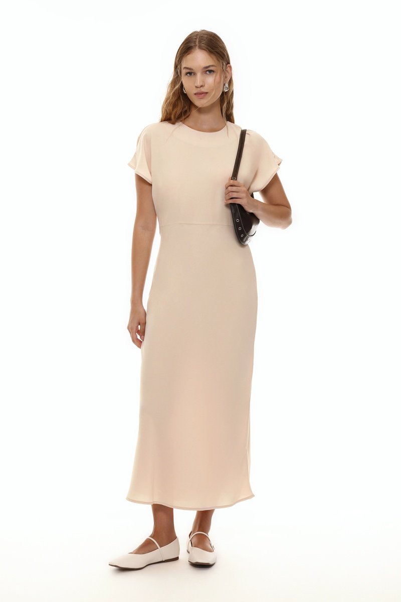 Fermeture zippée sur le côté et par goutte boutonnée au dos.