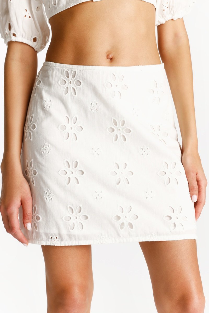 Jupe droite en broderie anglaise.
