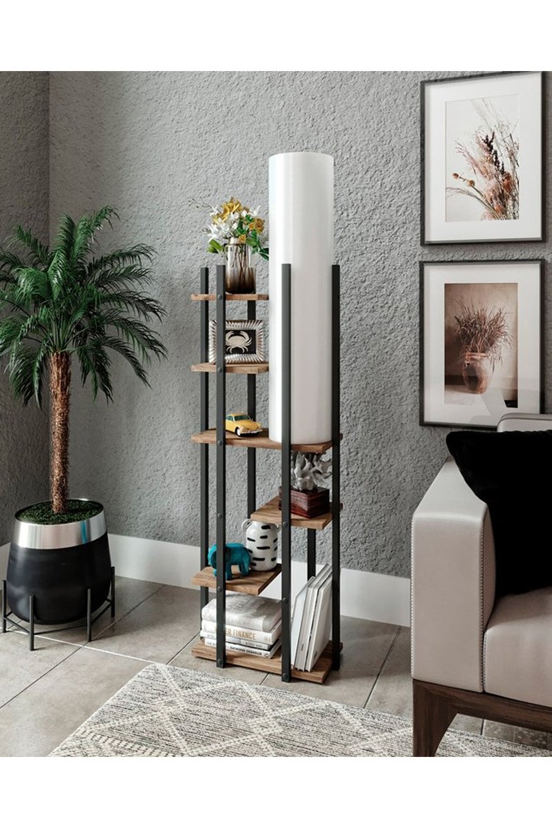 Lampadaire avec étagères.