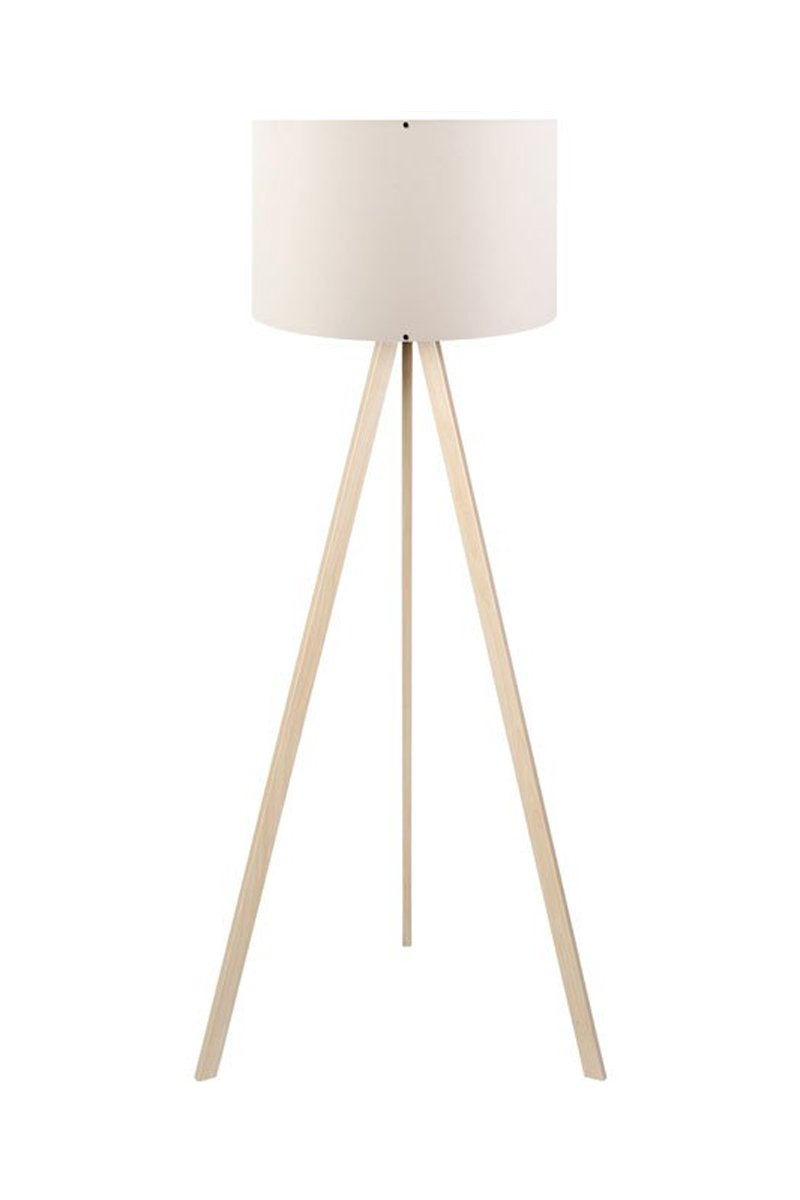 Lampadaire trépied - Blanc cassé et imitation chêne