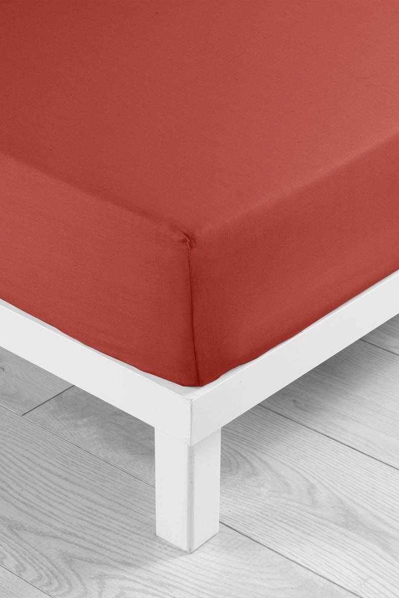 Drap-housse en coton 57 fils/cm² Lina - Terracotta