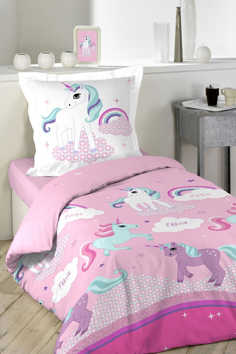 Parure de couette en coton 42 fils/cm² Licorne - Rose