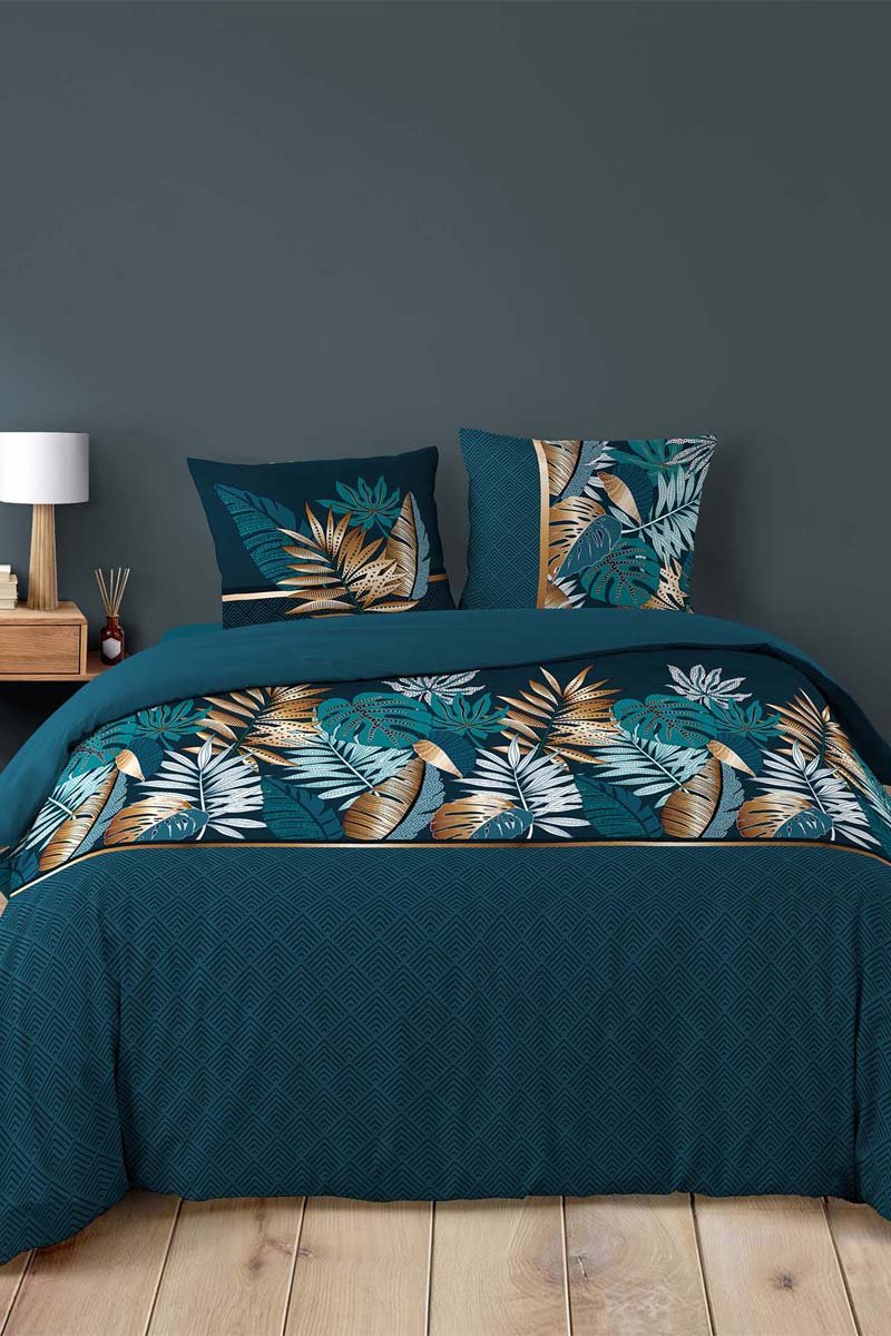 Parure de couette en coton - 42 fils/cm² Alianor - Bleu pétrole