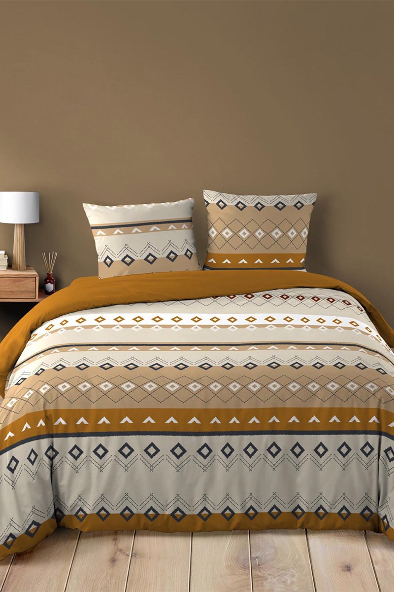 Parure de couette Xena en coton 42 fils/cm² - Marron et noir