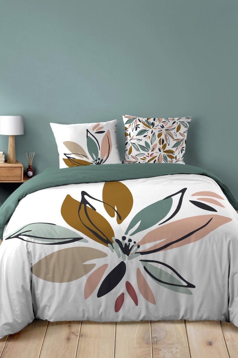 Parure de draps en coton Octavia - Blanc et vert