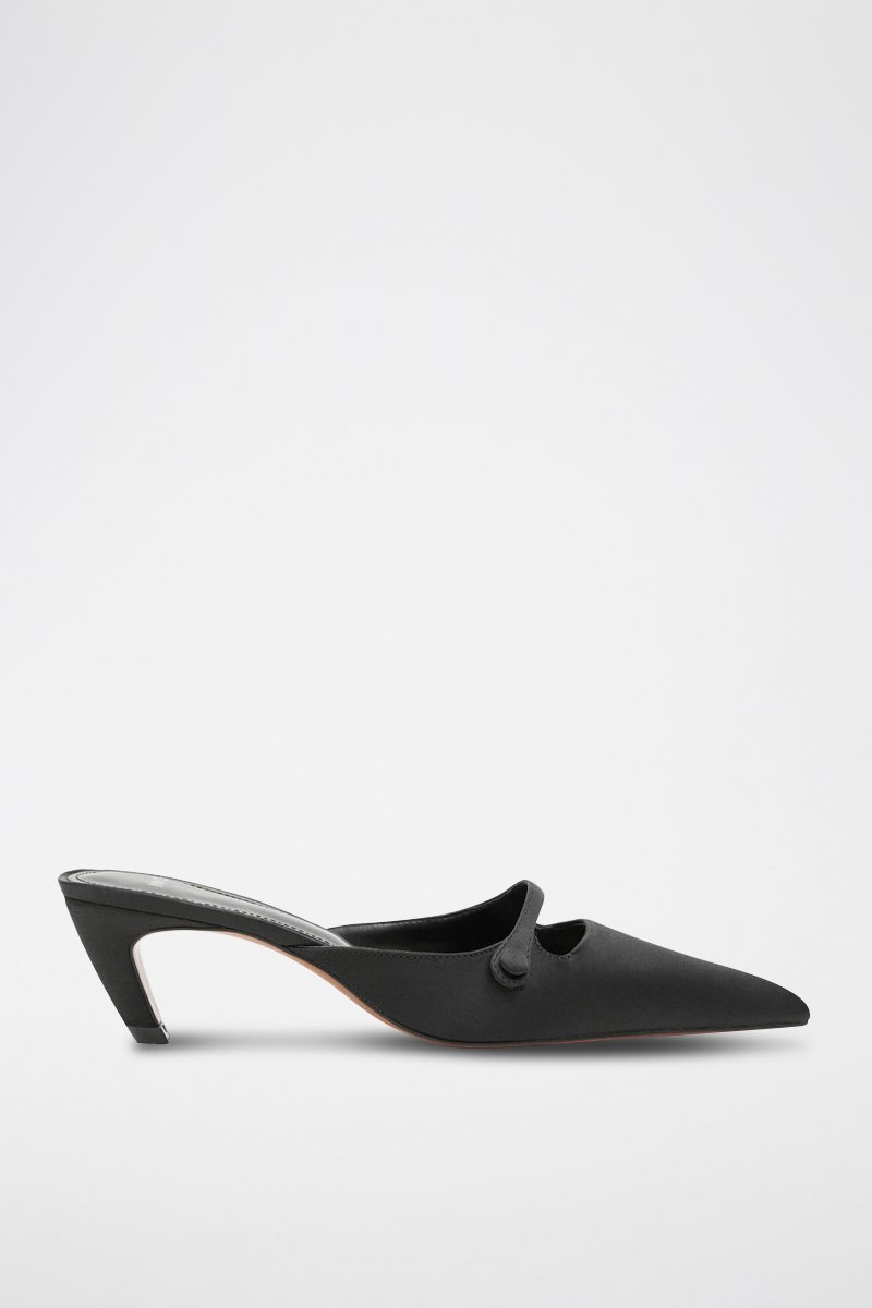 Mules à talons en satin - Noir