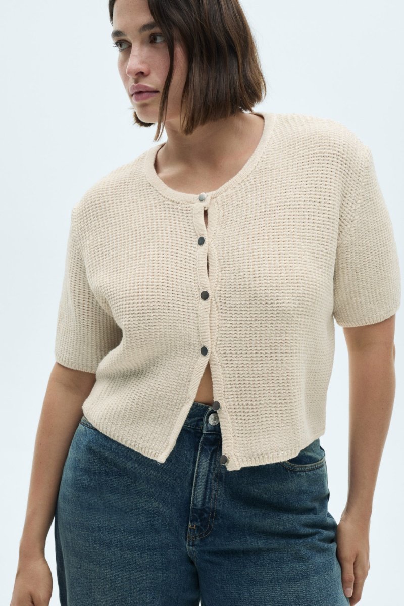 Cardigan maille manches courtes - Écru