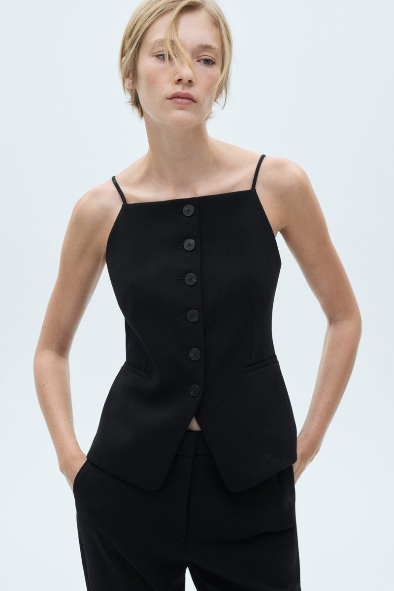 Gilet emmanchures américaines boutons - Noir