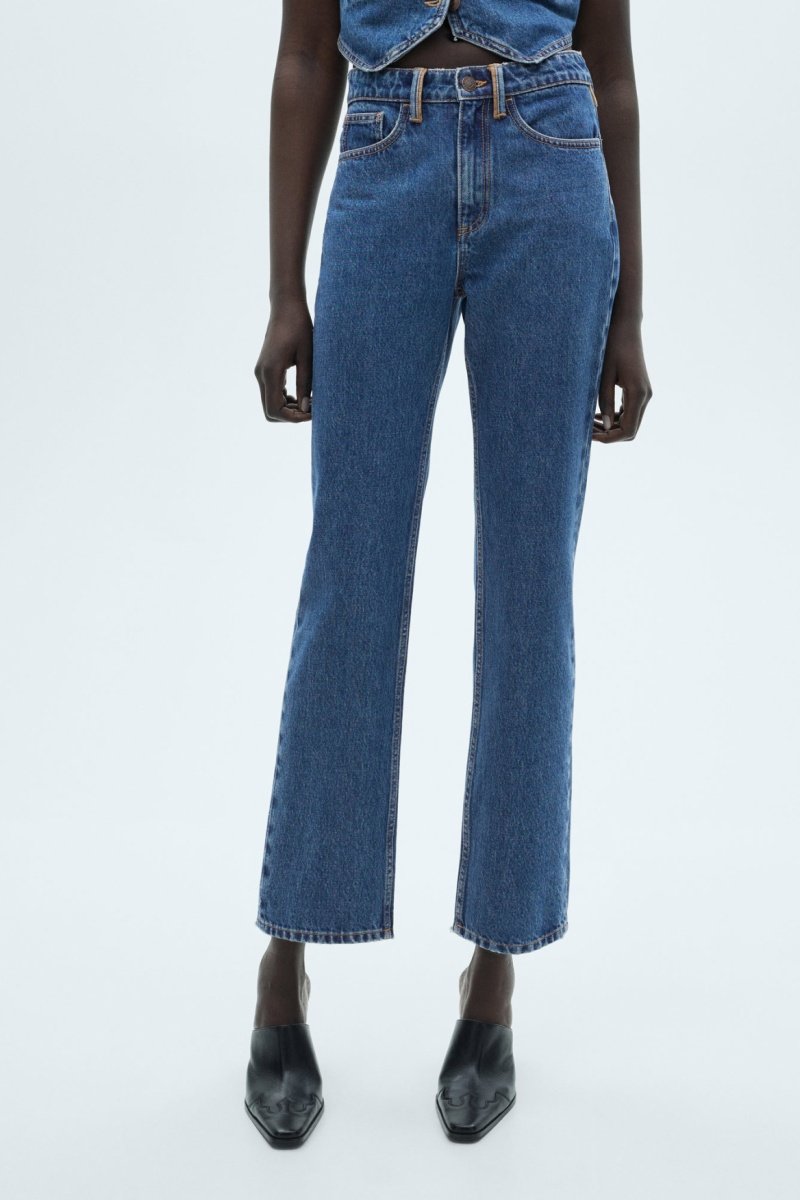 Jean droit détails contrastés - Bleu marine