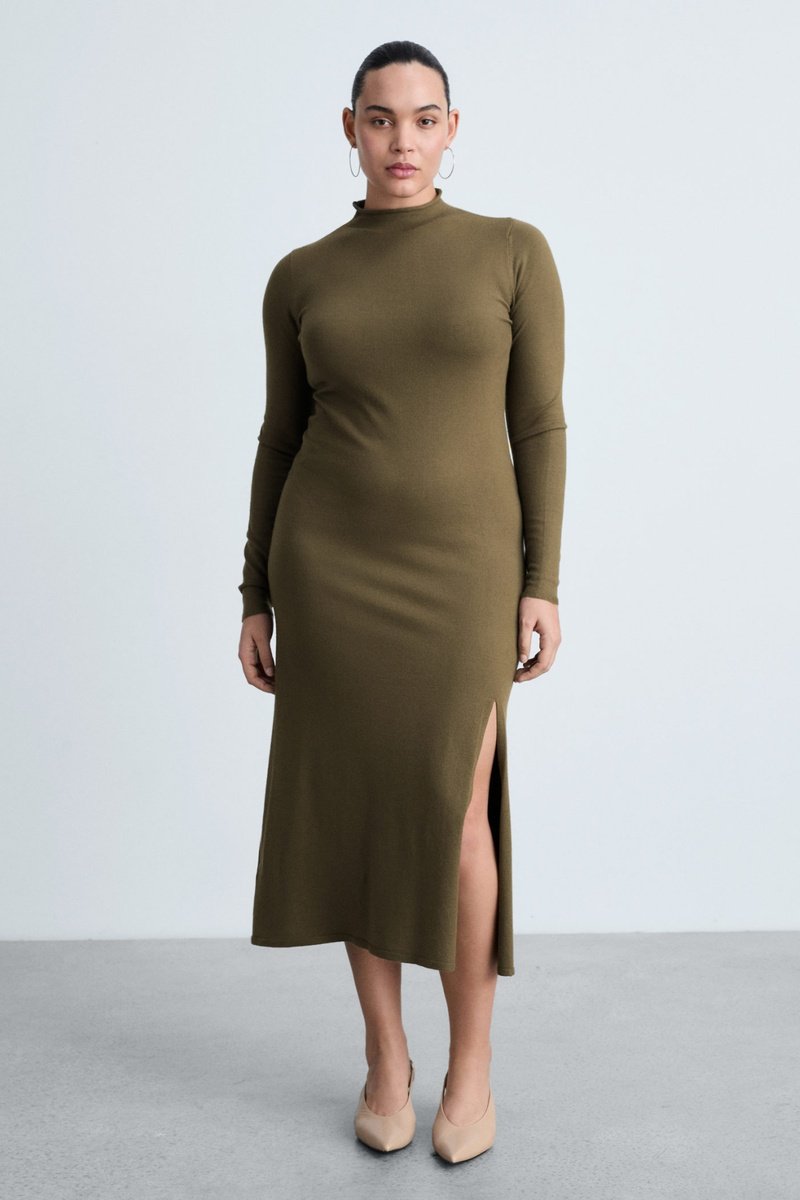 Robe maille ouverture - Kaki
