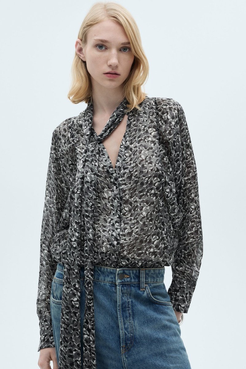 Chemisier imprimé animal avec nœud au col.