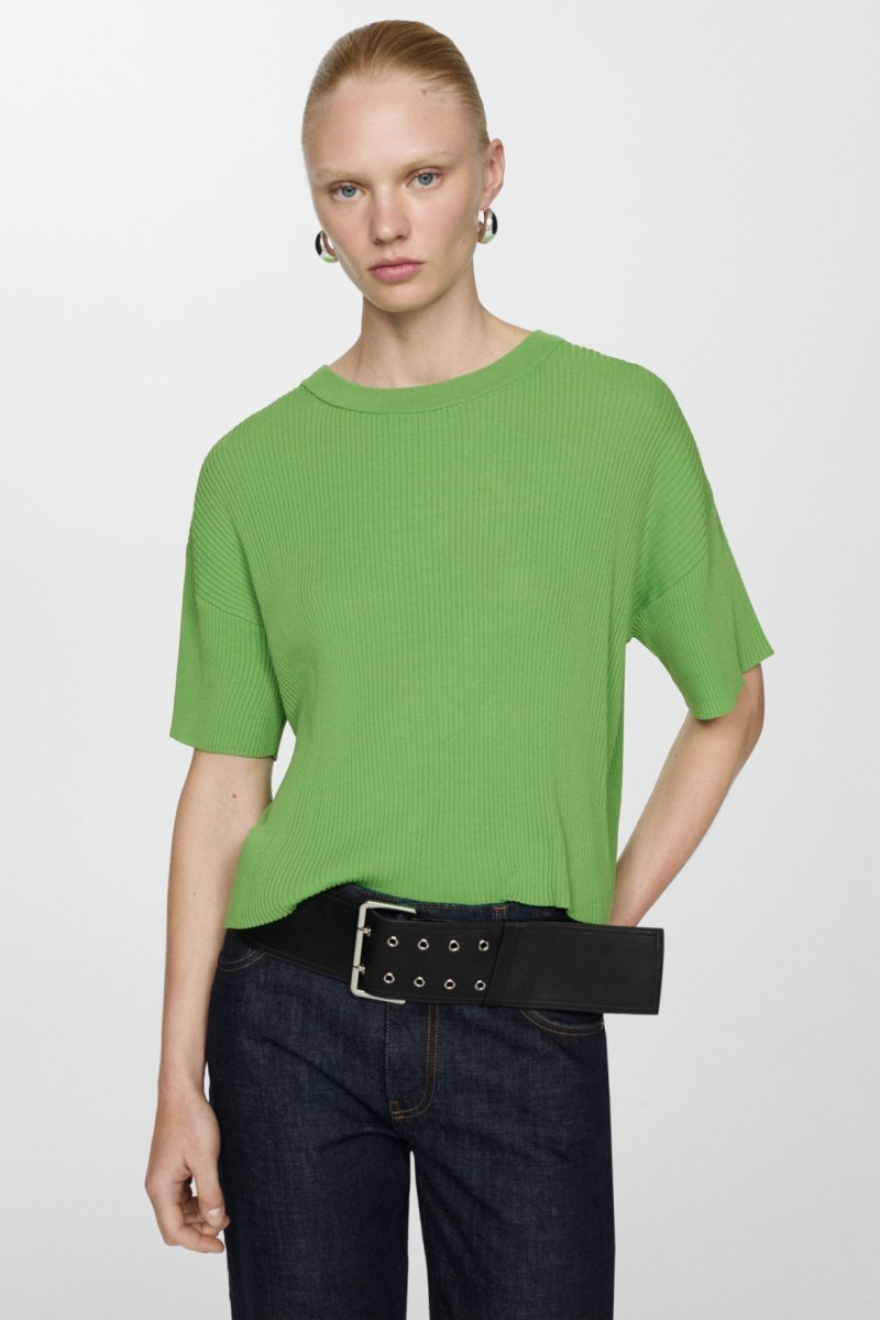T-shirt maille côtelée - Vert