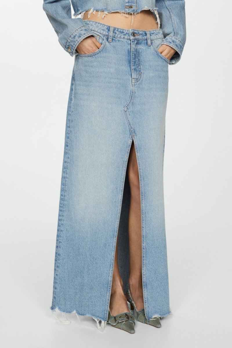 Jupe en jean bas effiloché.