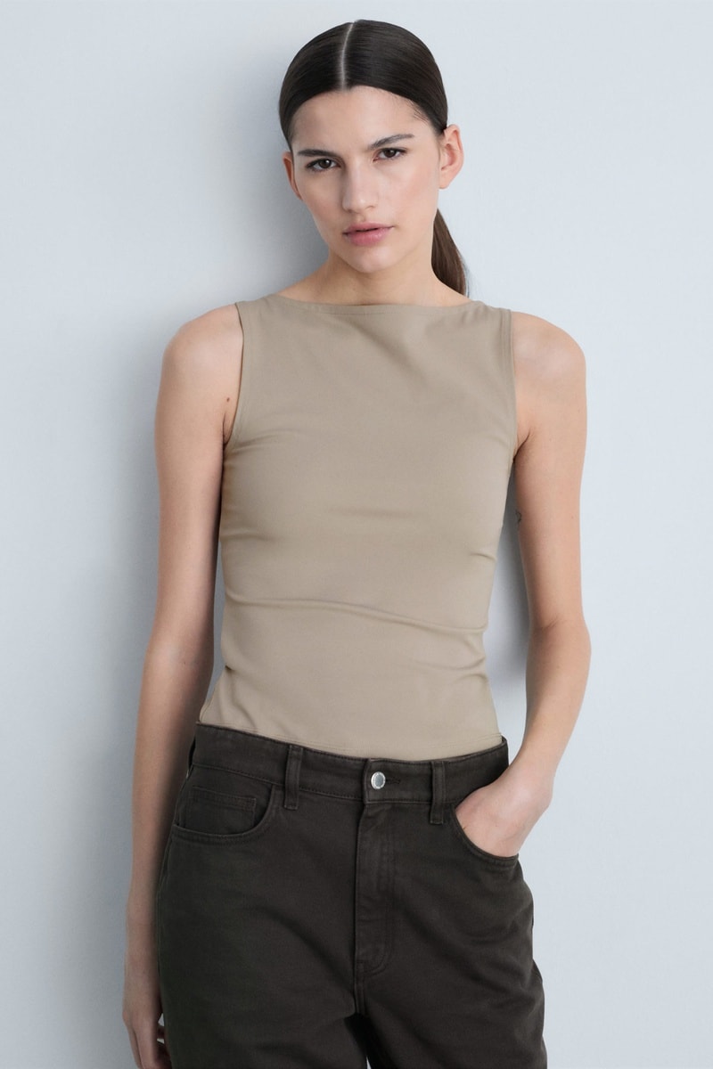 Top bretelles col bateau - Marron clair