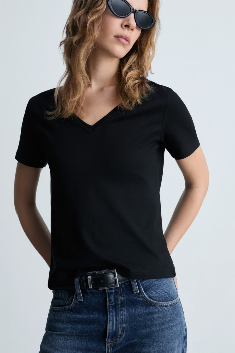 T-shirt coton col en V - Noir
