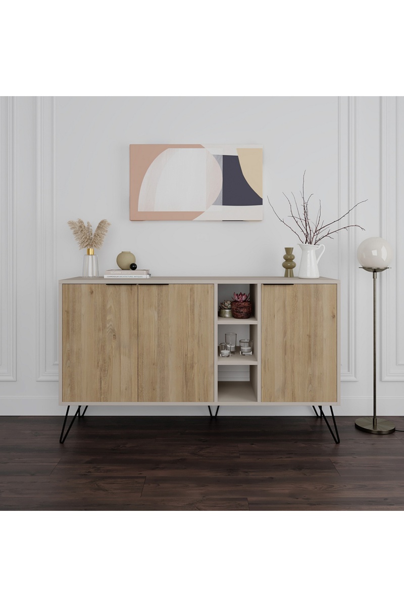 Buffet 3 portes Clara - Imitation bois et beige
