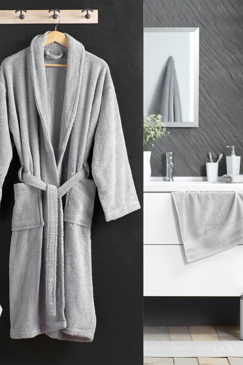 Peignoir + Drap de douche + Serviette de toilette Tendresse - Gris - 70 x 130 / 50 x 90 cm
