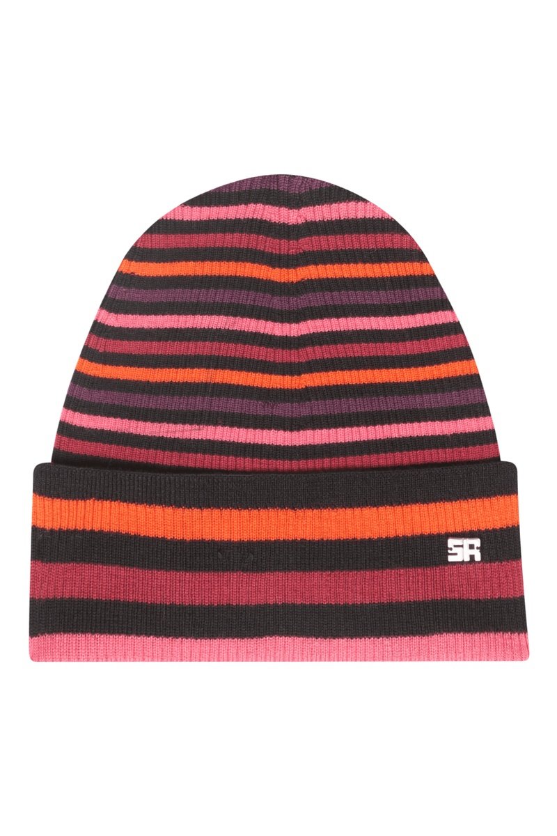Bonnet en laine - Noir et rose