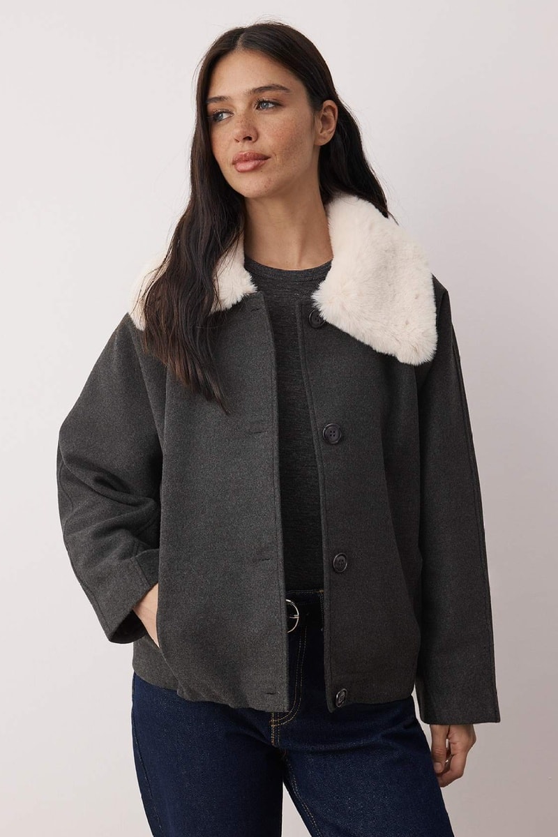 Col classique en fourrure synthétique.