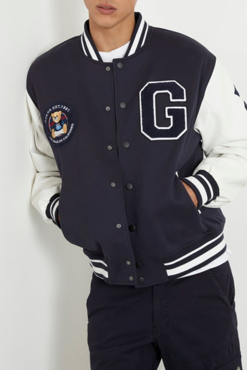 Motifs fantaisie et logo brodé sur la manche gauche et devant.
