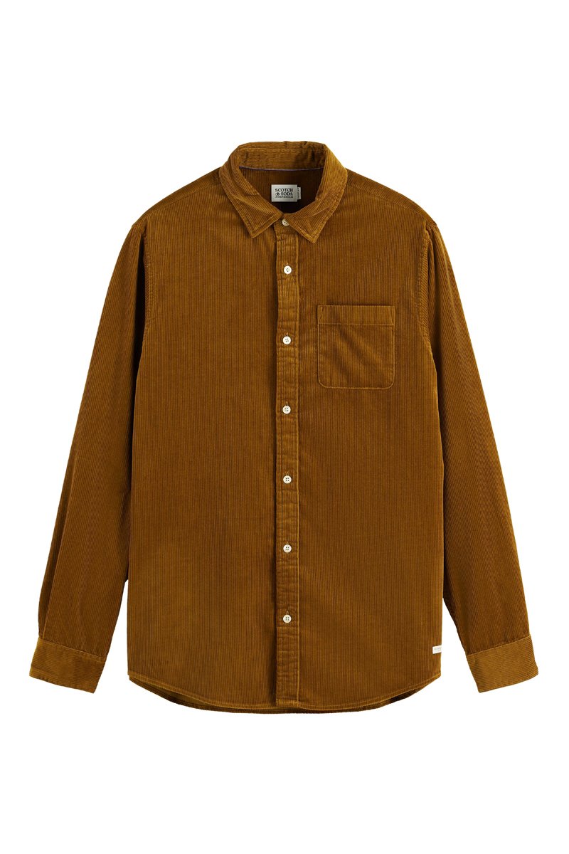 Chemise en velours à manches longues boutonnées.