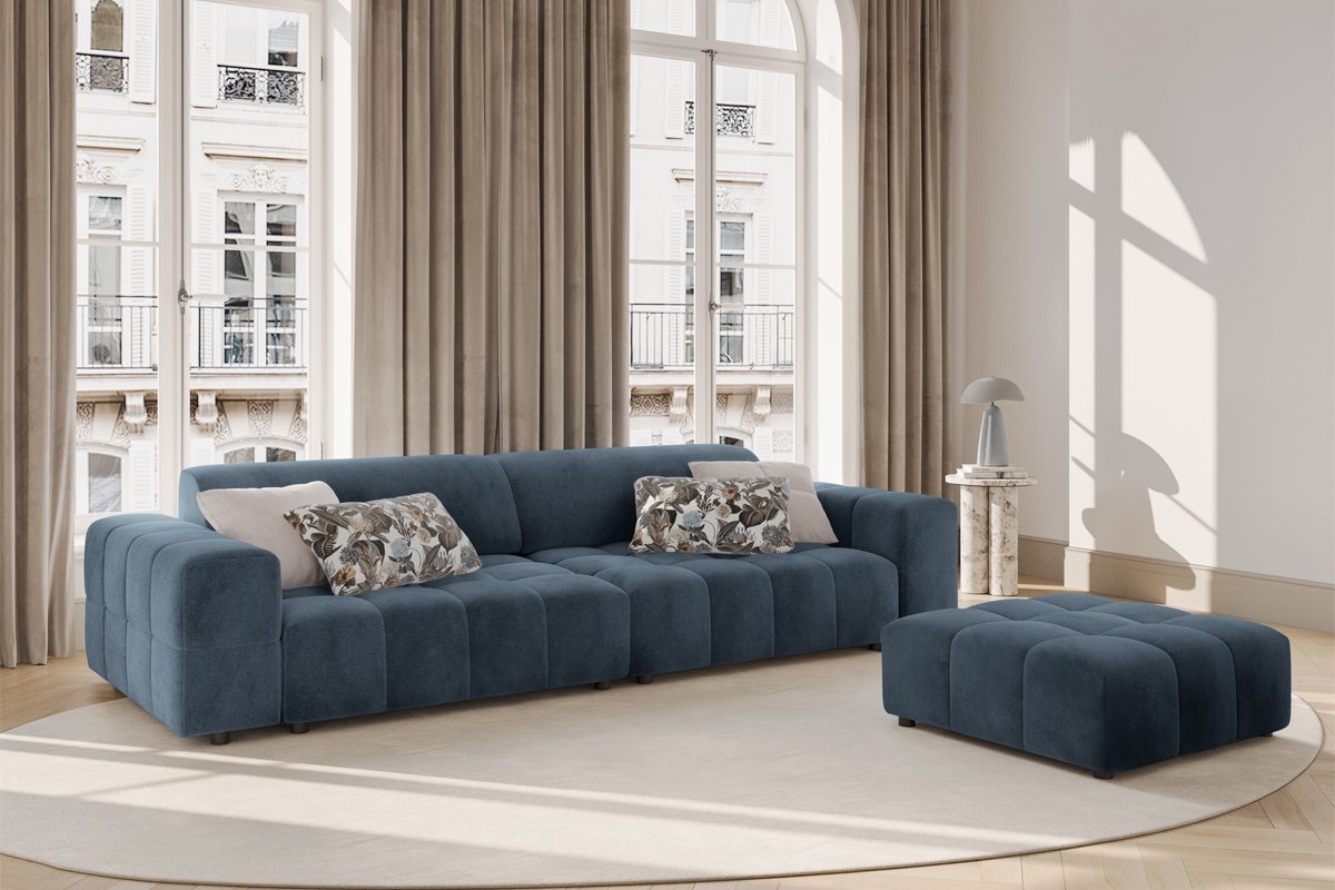 Canapé Luc - Bleu foncé - 4 places - En tissu structurel