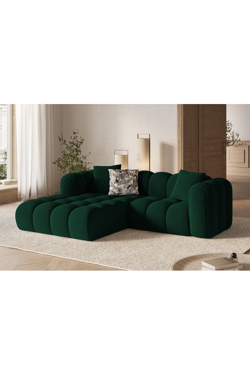 Canapé d'angle gauche modulable Elise - Vert foncé - 3 places - En tissu velours