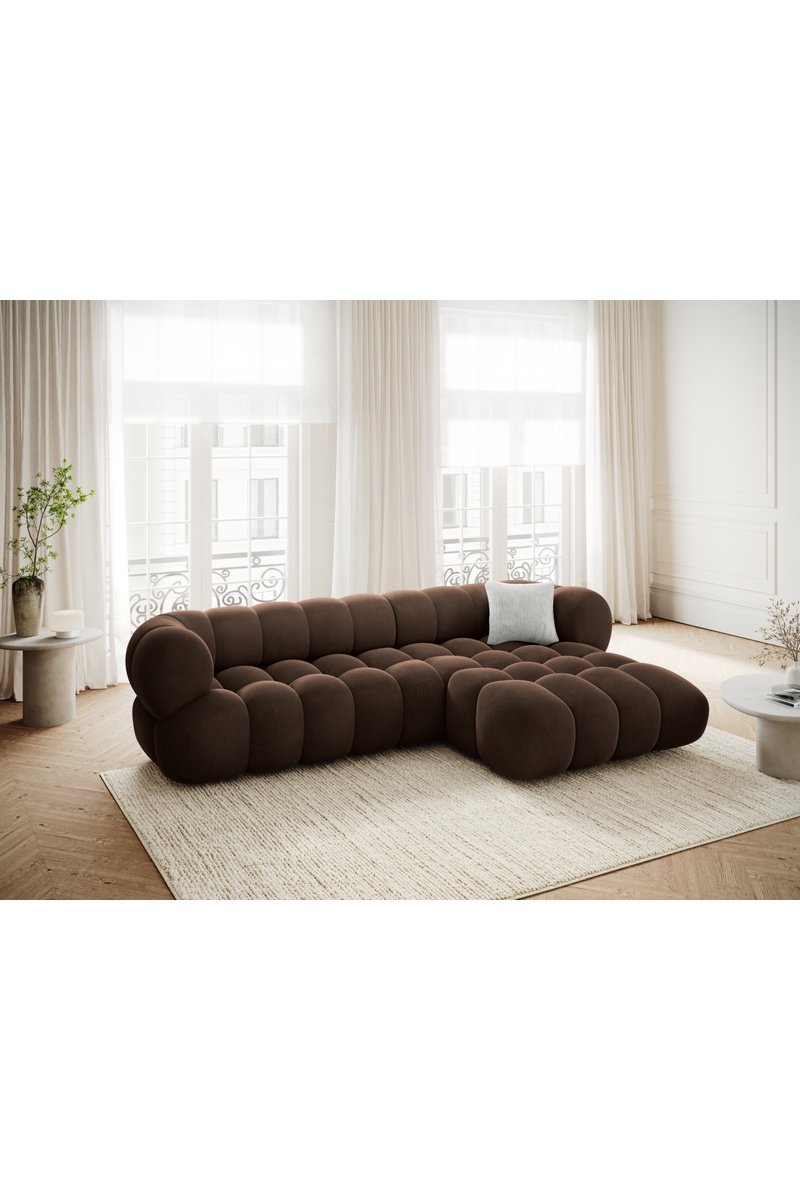 Canapé d'angle droit modulable Maurice - Marron - 3 Places - Tissu velours