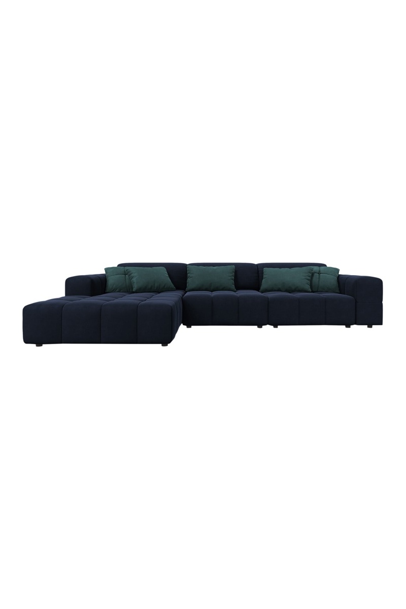 Canapé d'angle gauche Luc - Bleu foncé - 4 places - Toucher velours