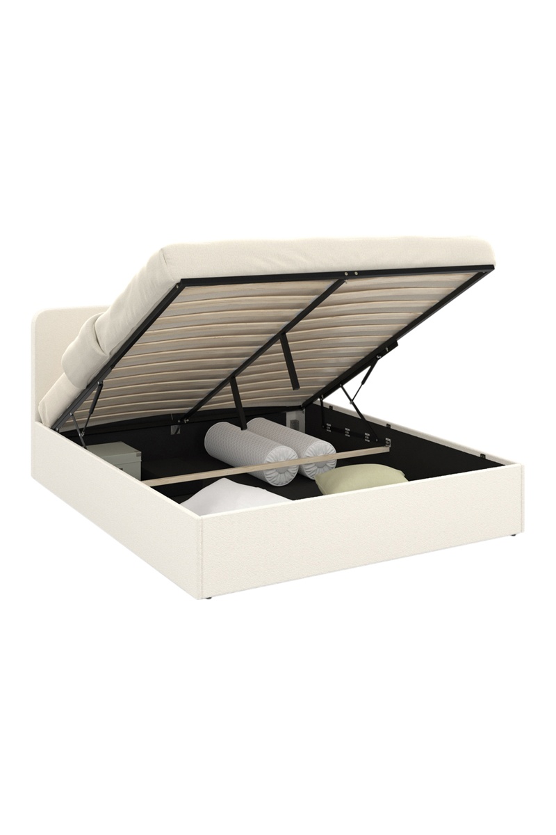Lit-coffre avec sommier et tête de lit arrondie - Couchage 160 x 200 cm