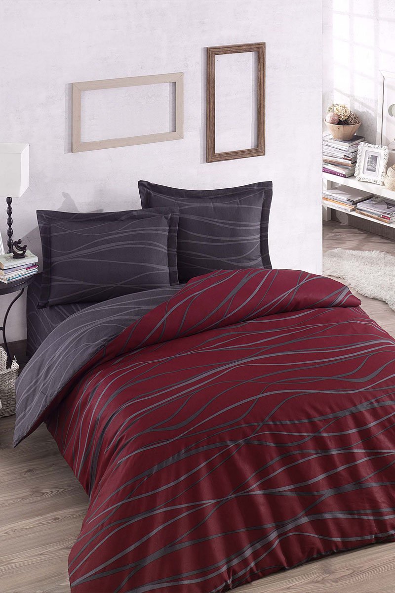 Parure de couette en coton 48 fils/cm² Verda - Rouge et anthracite