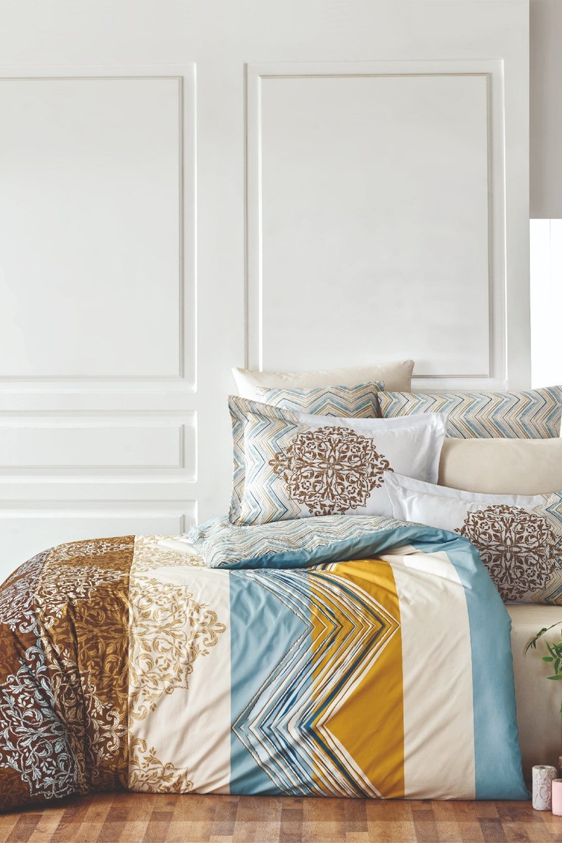 Parure de couette en coton - Bleu et marron