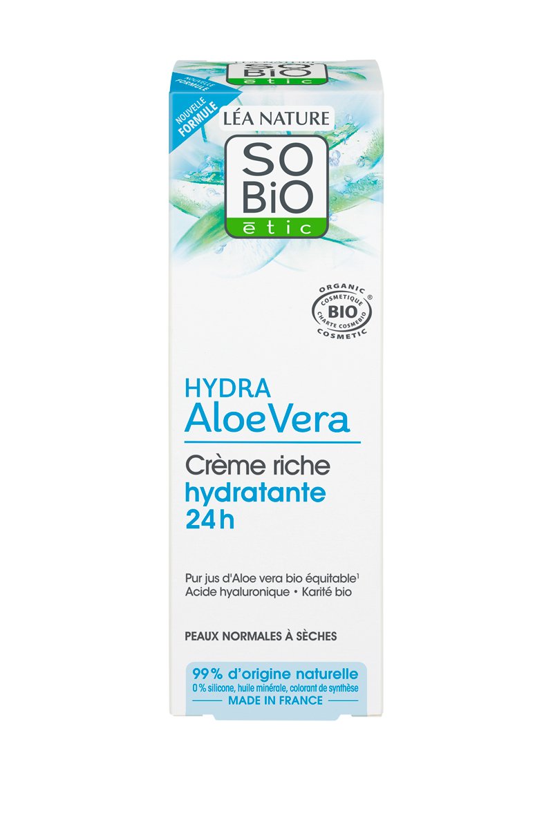 Crème riche hydratante 24H Bio - Peaux normales à sèches - Aloe vera - 50 ml