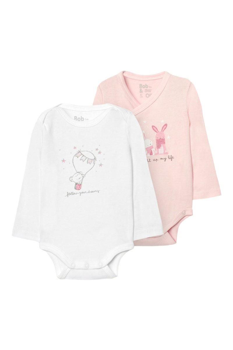 2 bodys en coton biologique - Rose poudré et blanc