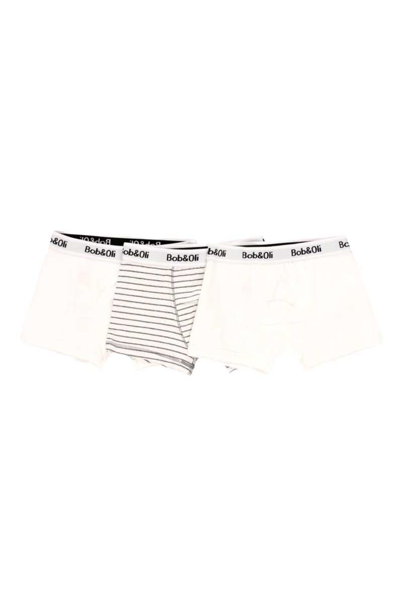 3 boxers en coton biologique mélangé dont 1 à motifs à rayures.