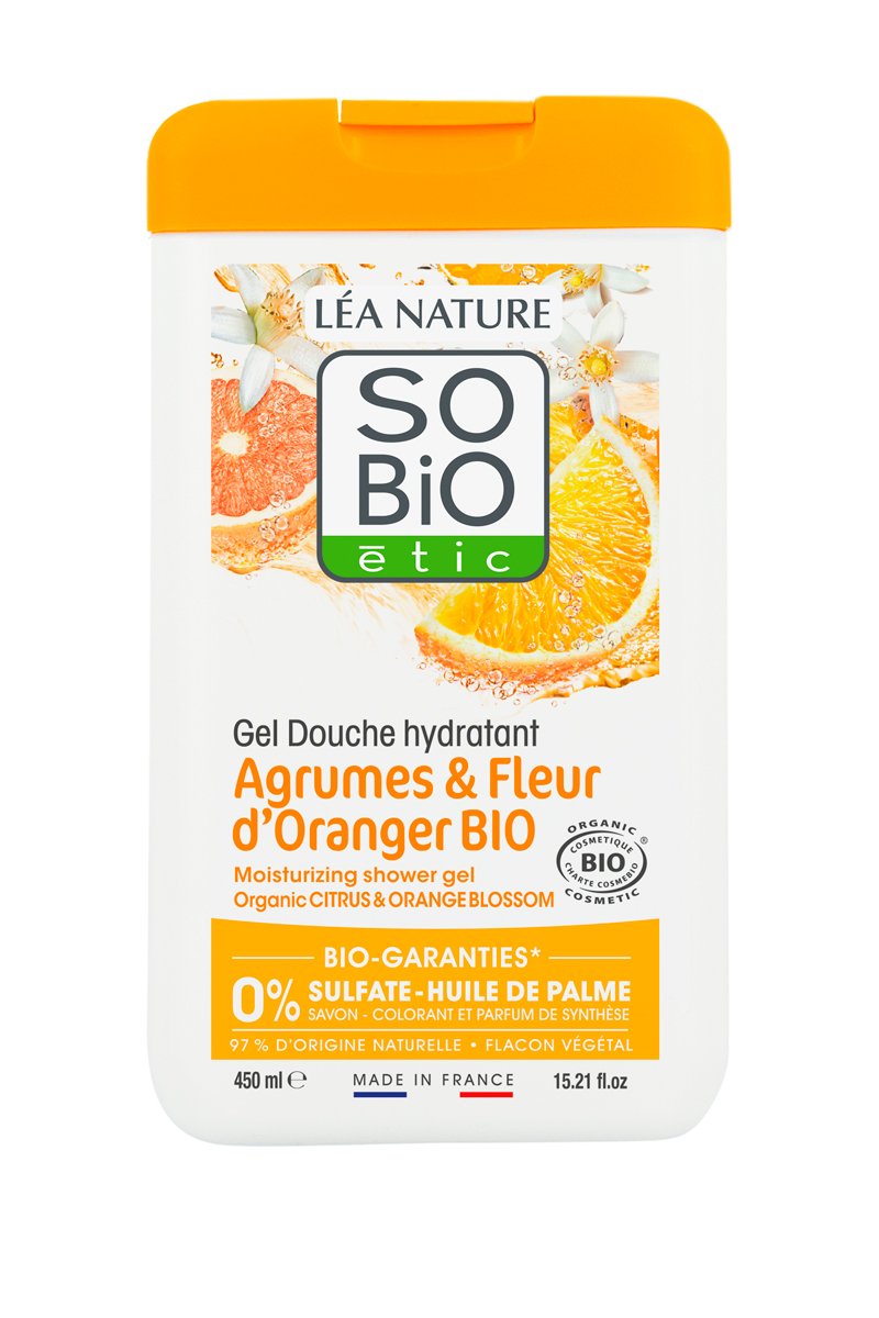 Gel douche hydratant Agrumes et Fleur d'Oranger Bio.