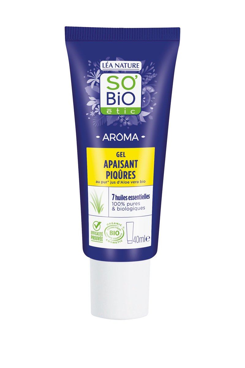 Gel apaisant piqûres au jus d'aloe vera bio et aux 7 huiles essentielles biologiques.