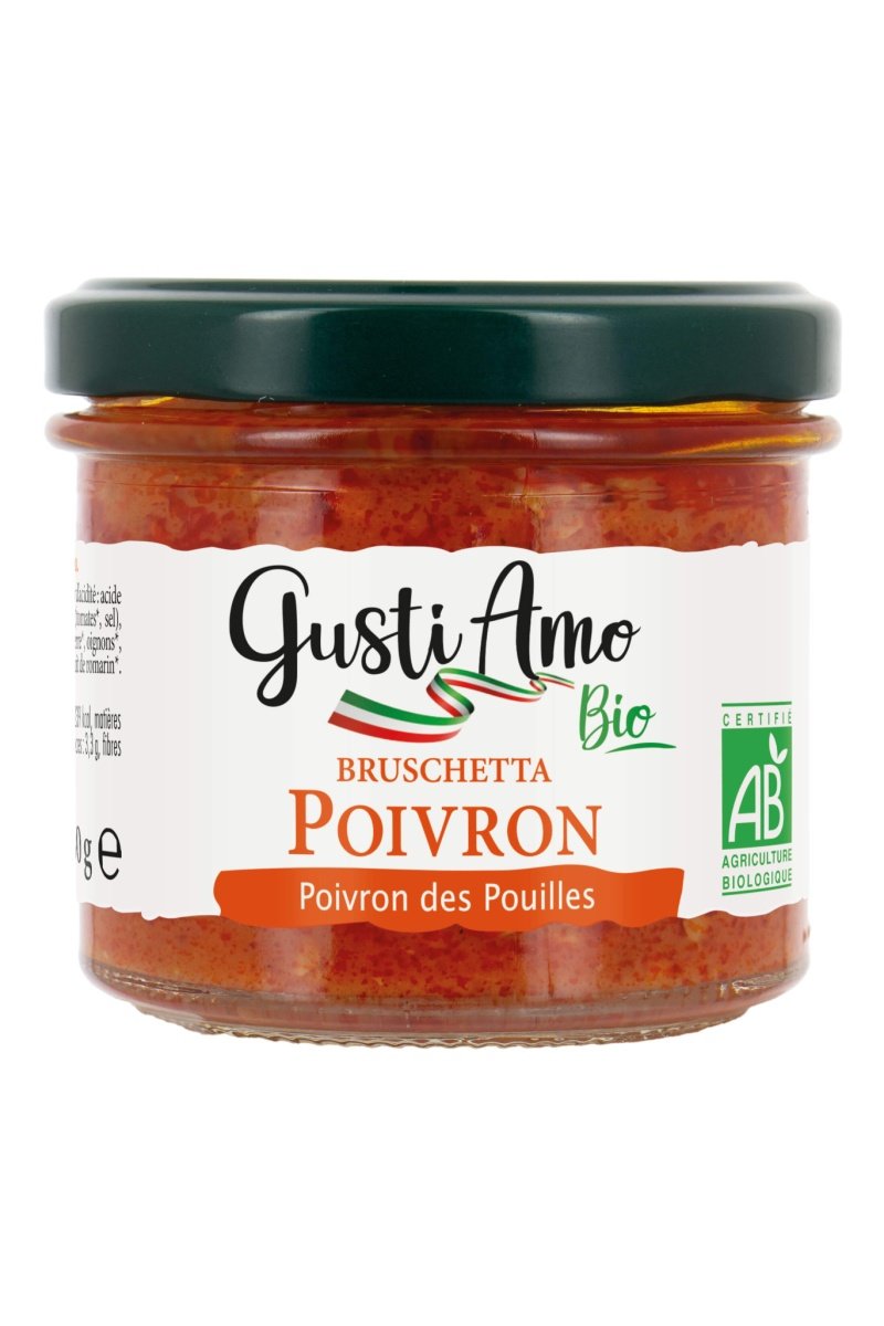Ingrédients : poivrons* (poivrons* rouges, sel, régulateur d'acidité : acide citrique) 60%, huile d'olive* vierge extra, tomates séchées* (tomates*, sel), huile de tournesol*, noix de cajou*, flocons de pomme de terre*, oignons*, sel, vinaigre de vin*, poivre*, jus de citron*, antioxydant : extrait de romarin*.