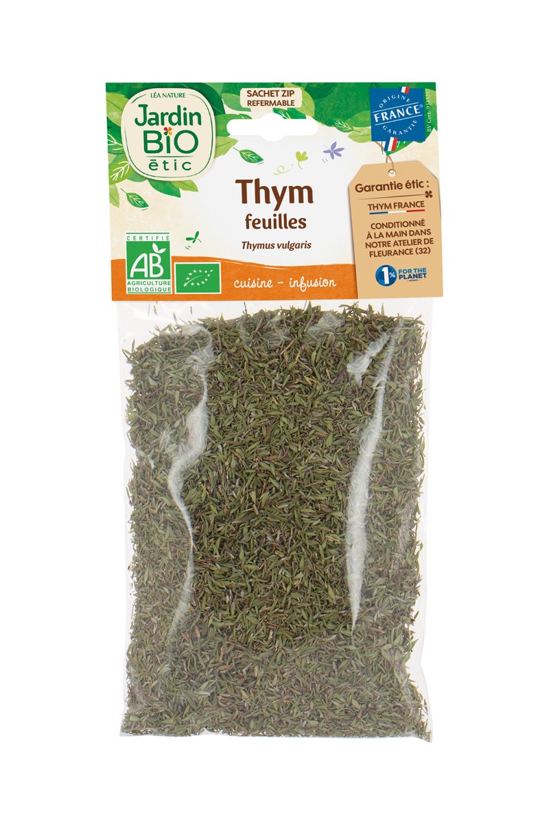 Ingrédients : Feuilles de thym (Thymus vulgaris) issues de l'agriculture biologique. 100 % Origine France.
